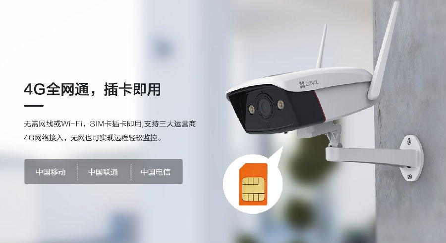 無需網(wǎng)線或wifi,SIM卡插卡即用,支持三大運(yùn)營商4G網(wǎng)絡(luò)接入,無網(wǎng)也可實(shí)現(xiàn)遠(yuǎn)程輕松監(jiān)控;